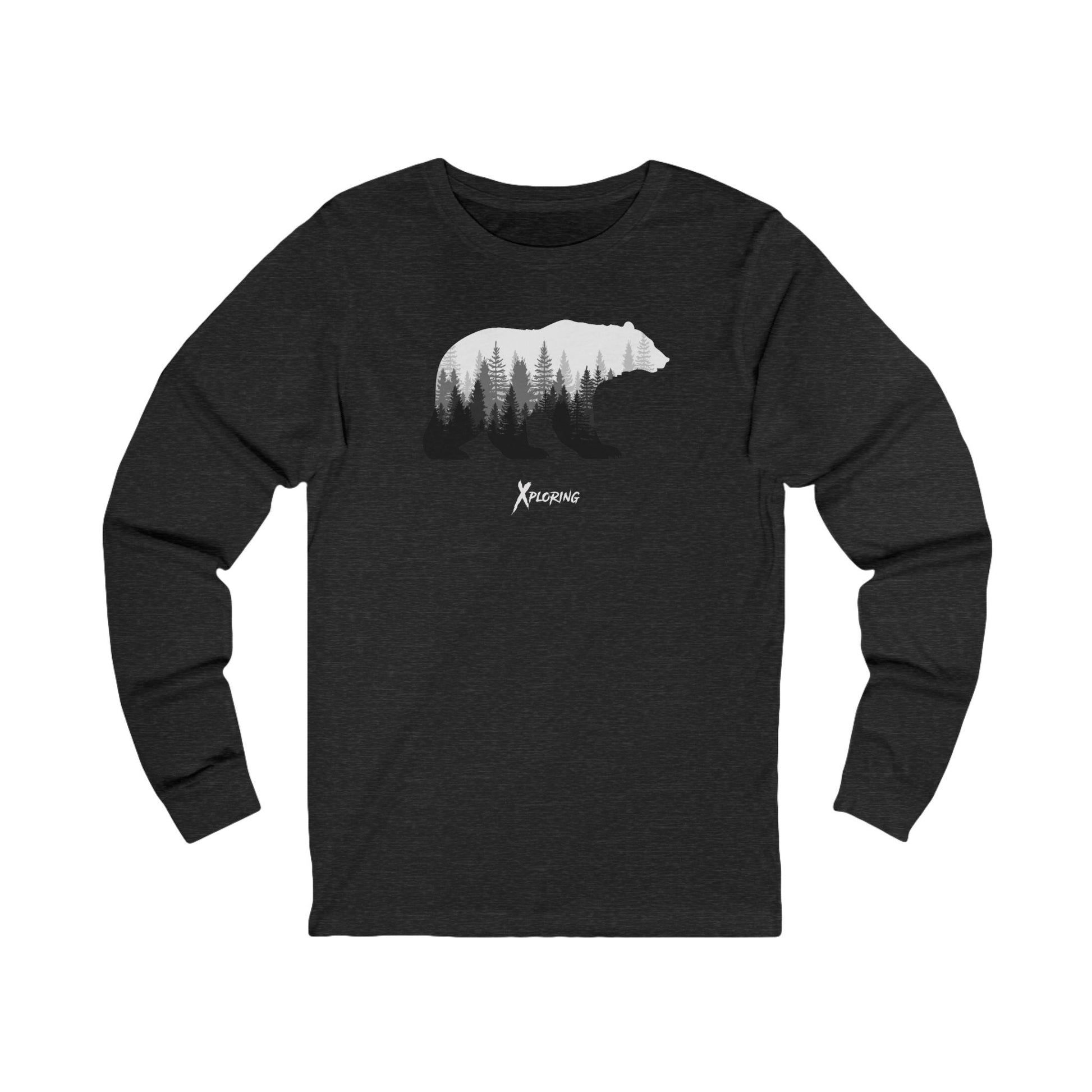 Adventurous Bear Graphic Long Sleeve Tee, Nature Lover Apparel, Camping Gifts, Hiking Outfit, Unisex Outdoor Wear