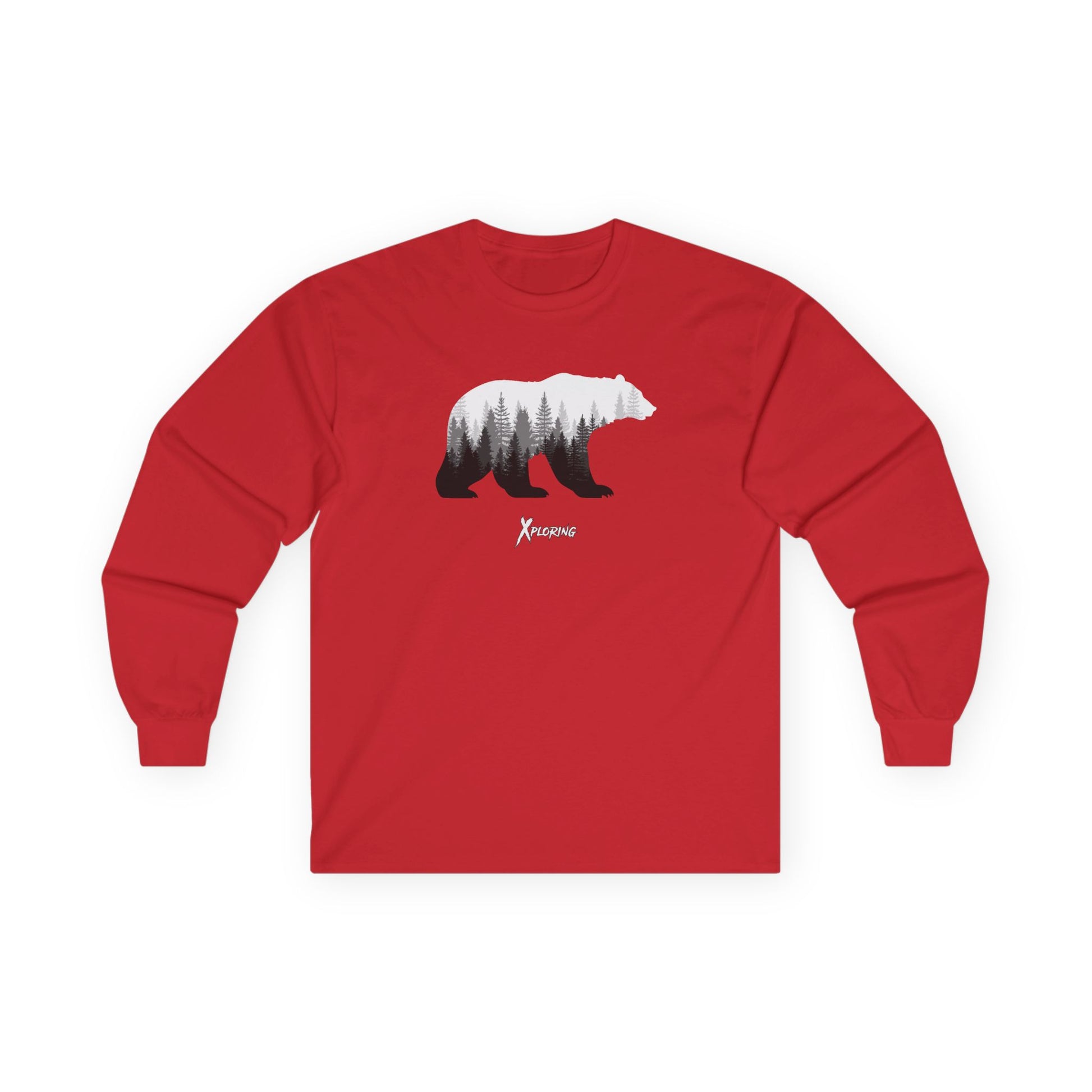 Xploring Men's Nature-Inspired Long Sleeve Tee, Bear Wildlife Shirt, Outdoor Lover Gift, Hiking Apparel, Eco-Friendly Fashion